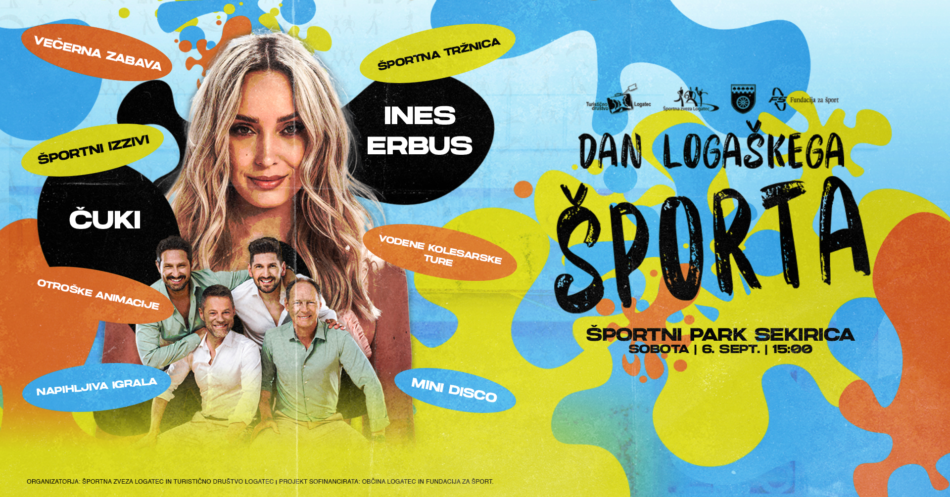Lepo vabljeni na tradicionalno prireditev Dan logaškega športa, na kateri boste lahko prejeli vse informacije glede športnih organizacij naše občine, za otroke pripravljamo zabavne vsebine popoldne nadaljujemo z nastopom skupine Čuki večer pa zaključimo z zabavo za katero bosta poskrbela Ines Erbus in DJ.